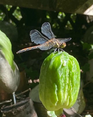 ウバユリの実に止まるノシメトンボ
