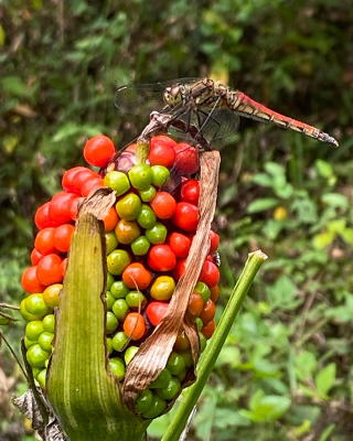 マムシグサの実に止まるアキアカネ