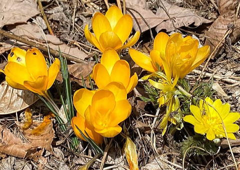 浜田宗治 エッセイ集 例年春は忍び足で やってくるのだけど 今年は大きな足音をたてて やってきたみたい。 #クロッカスとトリケラトプス #クロッカスと福寿草 #スイセンとクロッカス 2023年3月11日