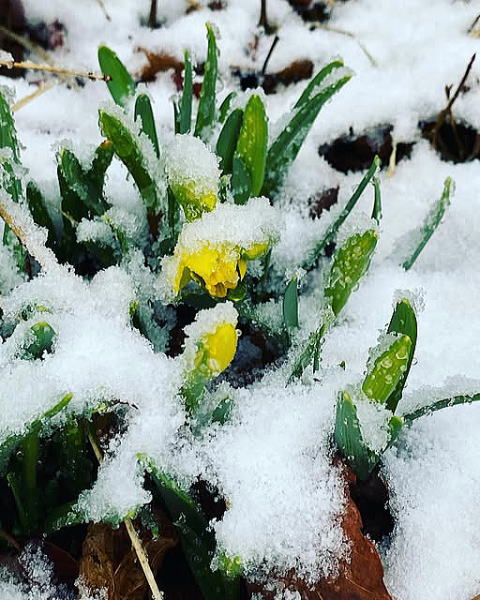 雪に埋もれてしまった水仙です。